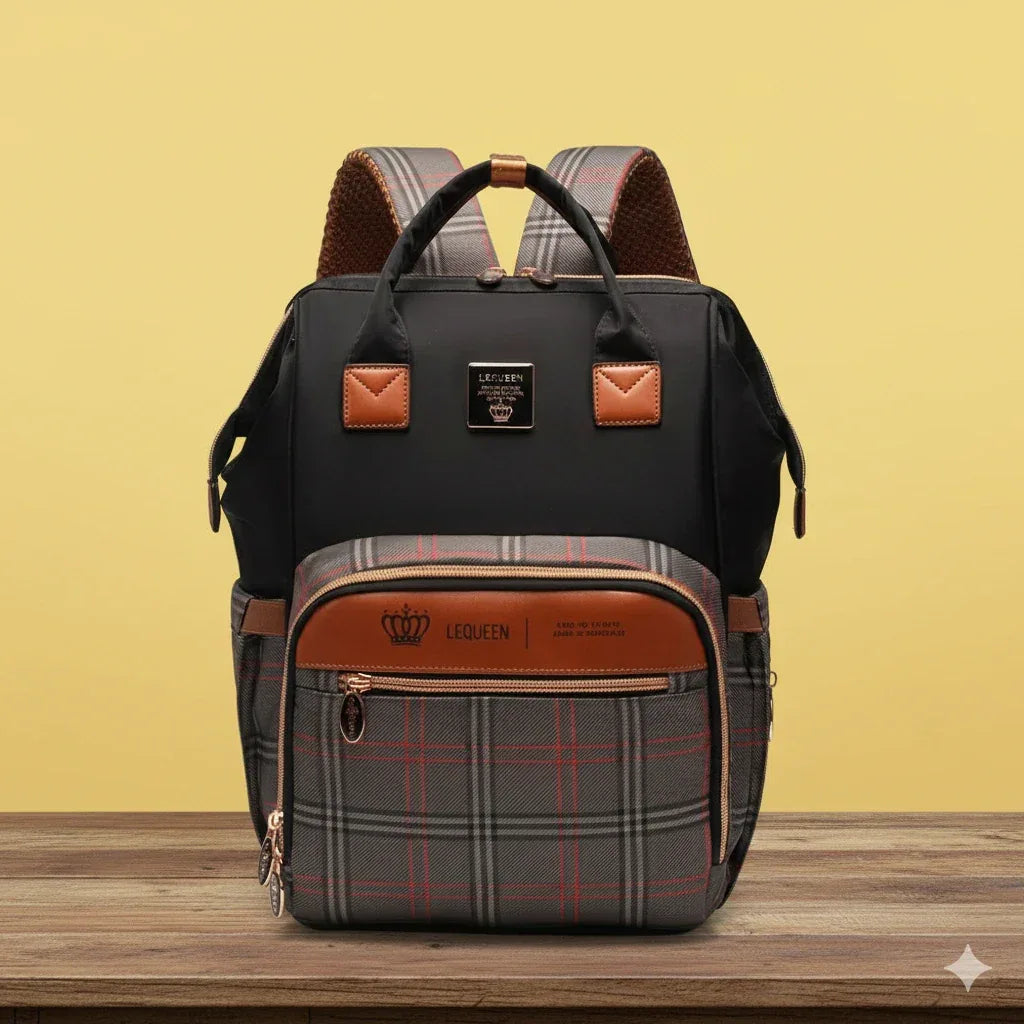 حقيبة ليكوين دايموند الإصدار الثامن الخاصة للأمهات، ناعمة ومقاومة للماء، باللون الرمادي، مصنوعة من قماش فاخر بنقشة ماسية، تجمع بين الأناقة والمتانة. صُممت هذه الحقيبة للأمهات العصريات، فهي تجمع بين الفخامة والعملية.
