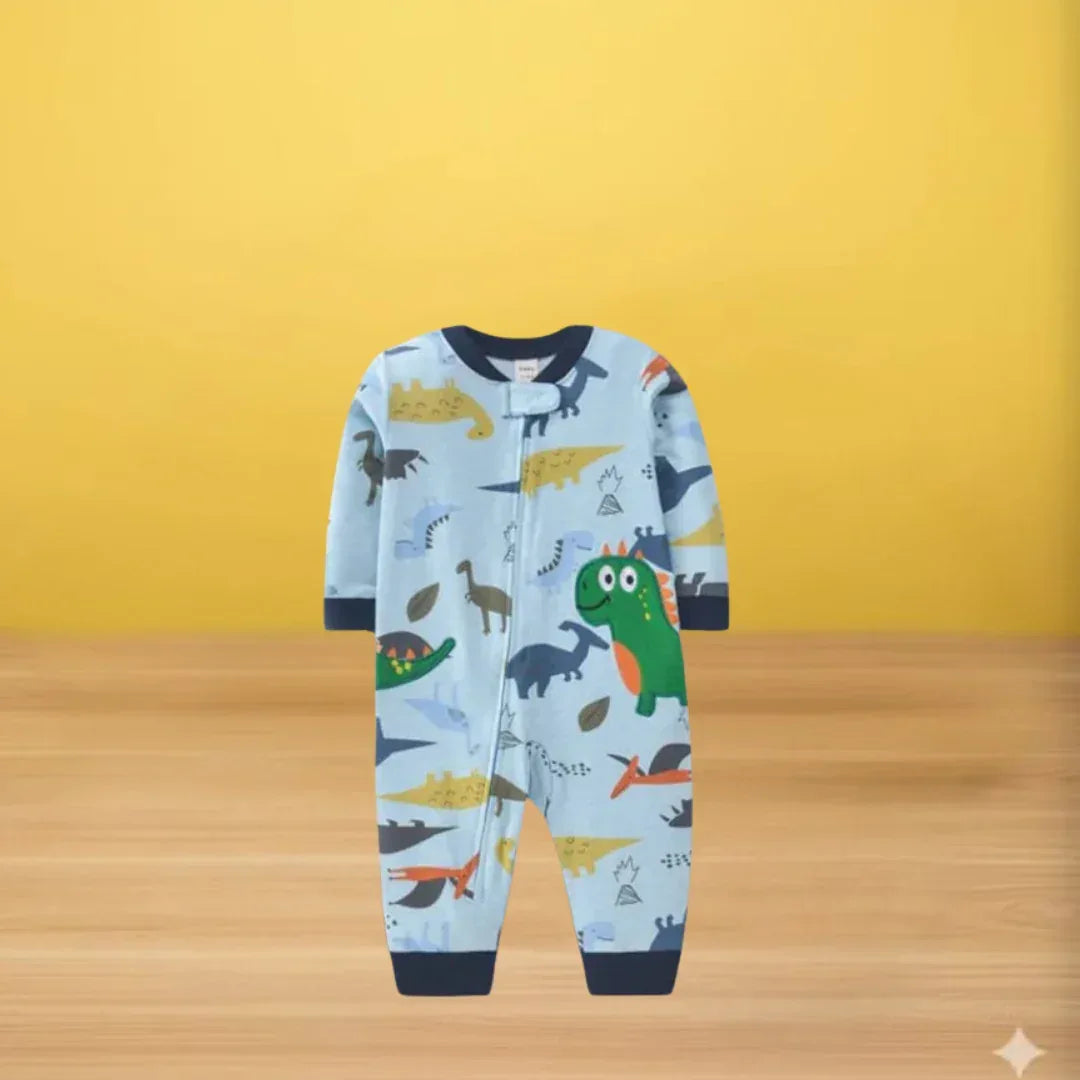 Featuring charming dinosaur prints and elegant fall colors, this romper adds a playful yet stylish touch to your baby’s wardrobe. The practical snap closures make diaper changes quick and hassle-free, while the flexible fit allows your baby to move freely and comfortably throughout the day.