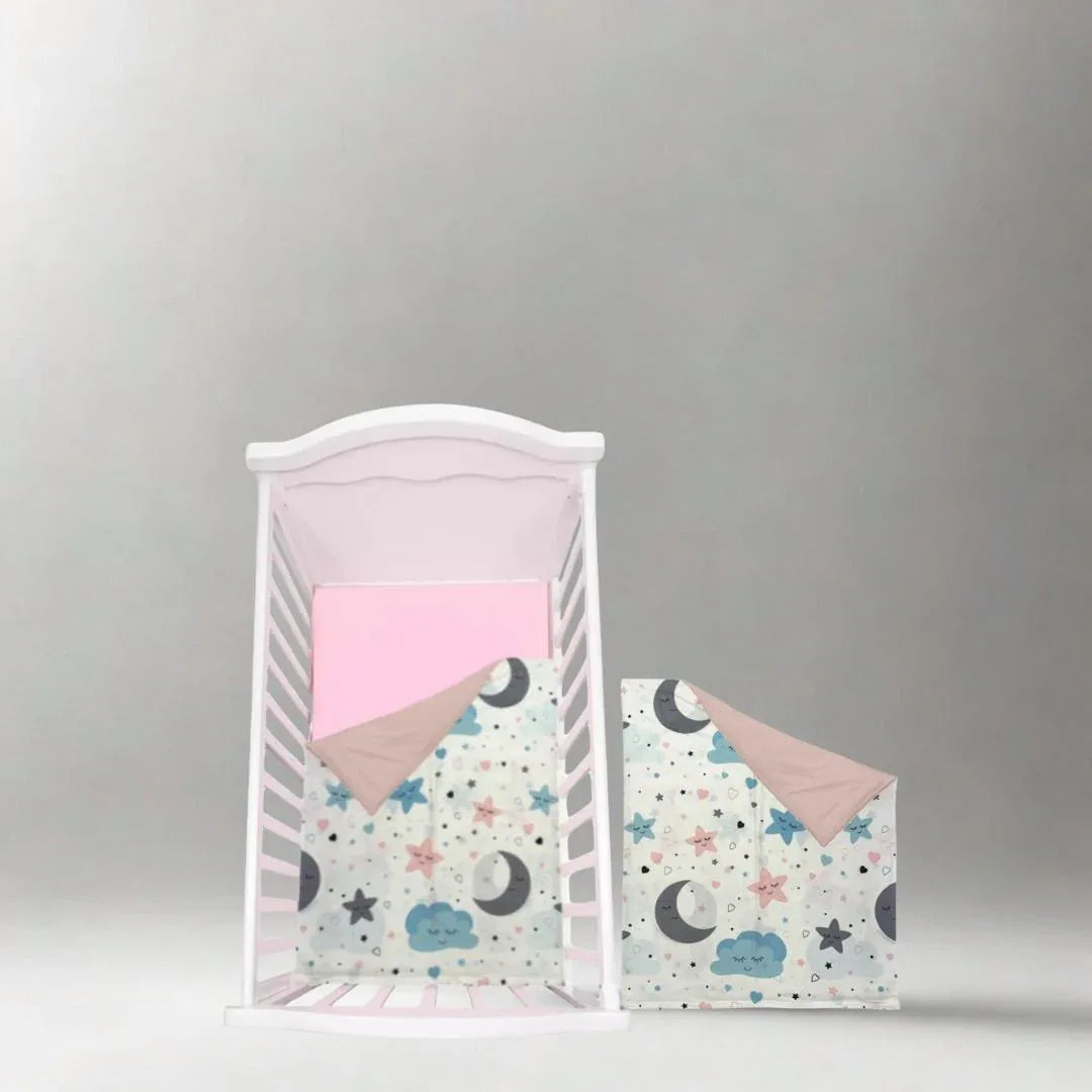 Wrap your little one in pure comfort with the Komkom Fiber Baby Quilt – designed with ultra-soft cotton fabric that provides gentle warmth and coziness for your baby’s delicate skin. 🌿 Perfect for cots and cot beds, this quilt ensures a peaceful and safe sleep experience for newborns and infants. Crafted with breathable fiber filling, it regulates temperature effectively, keeping your baby warm in winter and cool in summer. 🌙 The quilt’s charming and original prints bring a touch of elegance and playfulness to your nursery décor, matching your unique style effortlessly. Lightweight, durable, and easy to clean, it’s ideal for everyday use and travel. Designed for babies aged 0 months and above, this quilt combines softness, style, and practicality in one beautiful piece – making it a must-have essential for every parent who wants the best for their baby. 💛