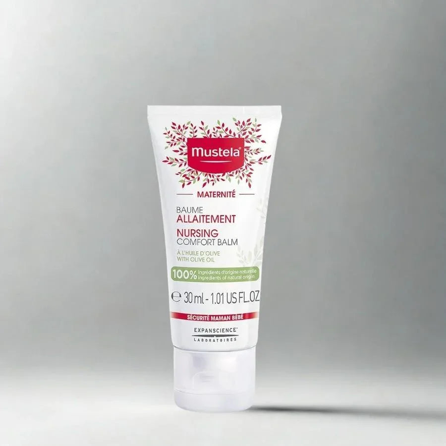 Mustela Nursing Comfort Balm 30ml is a soothing, organic-certified balm specially designed to care for sensitive nipples during breastfeeding 🤱🌿. Formulated with 100% natural ingredients, including olive oil and vitamin E, this balm provides instant relief from discomfort, dryness, or sensitivity while maintaining the skin’s natural barrier. Its fragrance-free, hypoallergenic formula ensures maximum safety for both mother and baby, with no need to rinse before nursing.